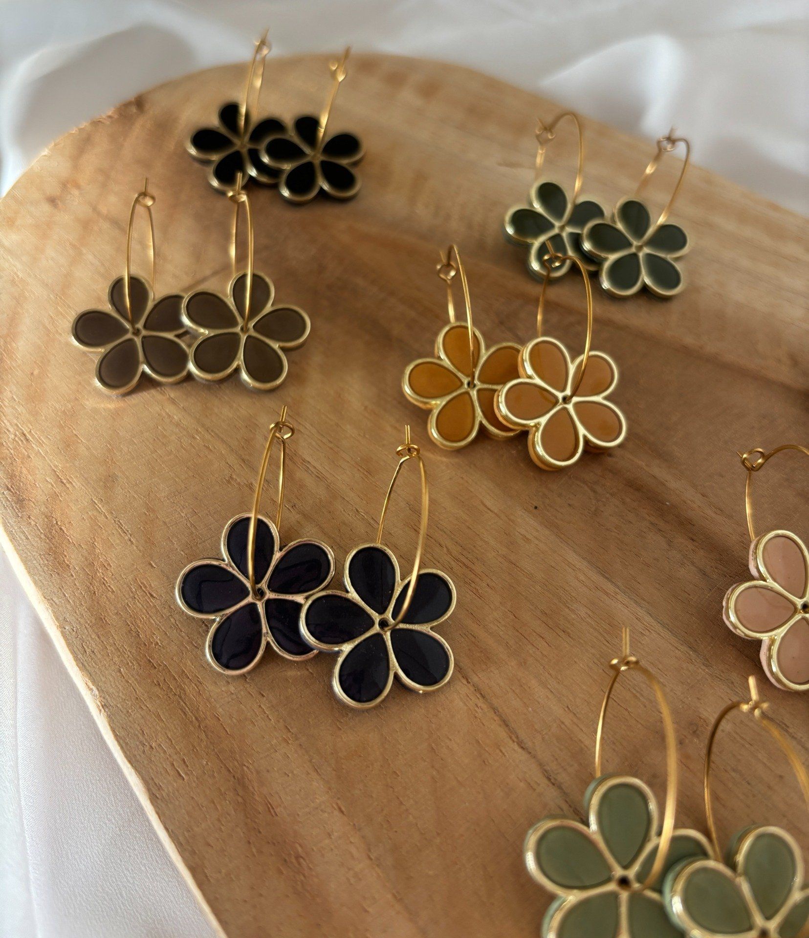 Ces fines créoles à fleurs colorées sont parfaites pour une touche de légèreté et d'élégance.