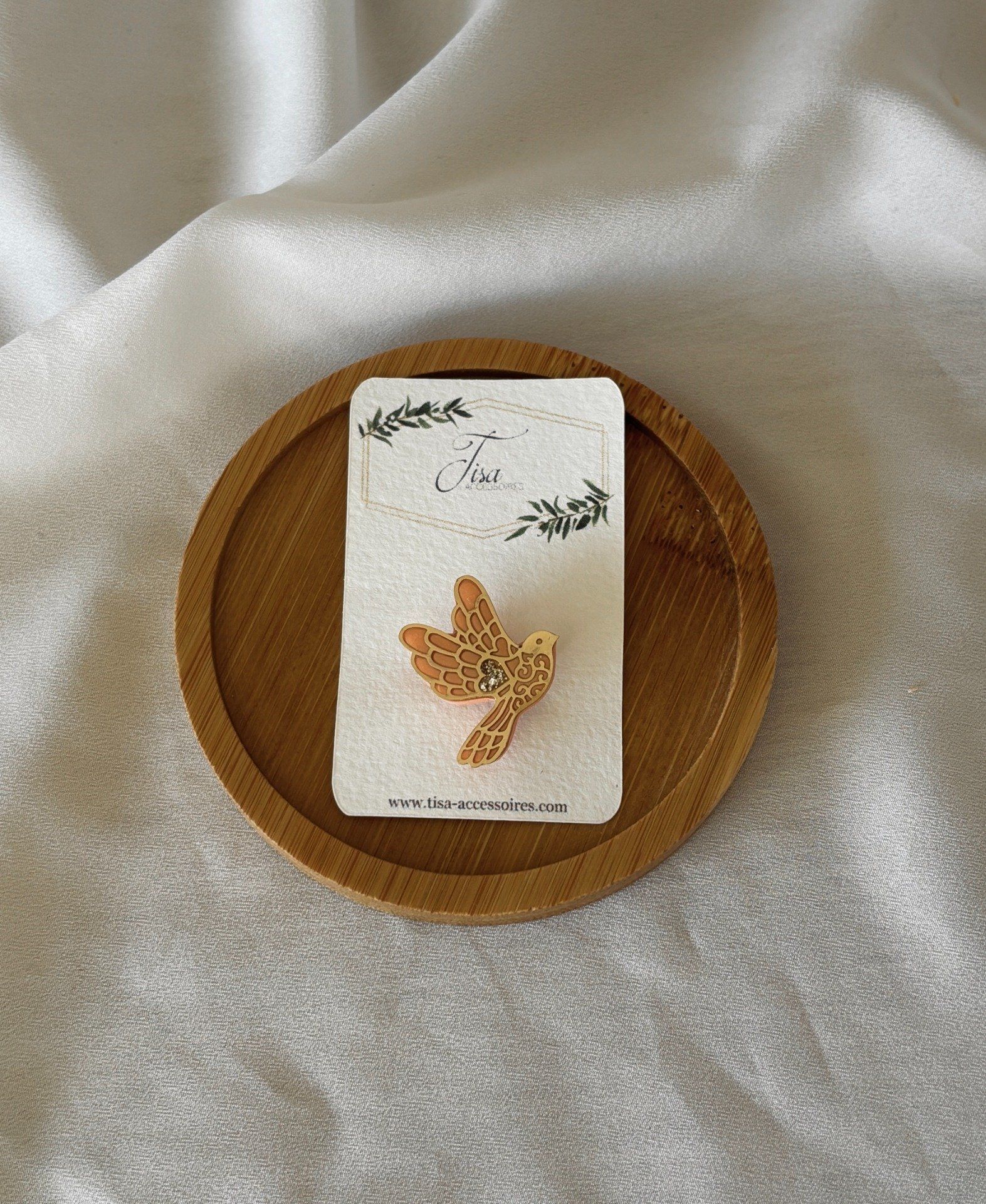Broche oiseau posé sur votre tenue, messager de douceur et de lumière.